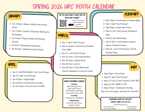 Spring 2026 Youth Event Calendar